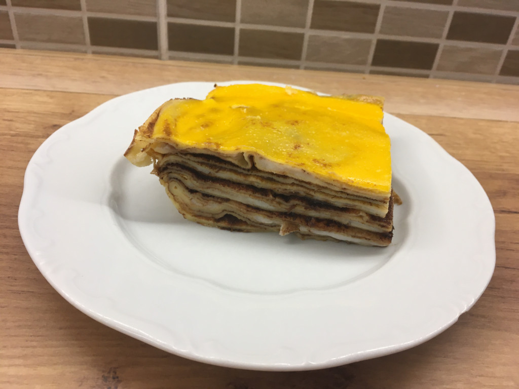 4.) A legfinomabb része a teteje: kikeverek 3 kanál tejfölt, 2 tojássárgáját 2 evőkanál cukorral és leöntöm a palacsintát.